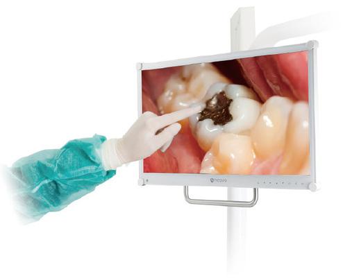 Die DR-Serie verfügt über den ebenso einfachen wie Illuminator-Modus, der es Zahnärzten ermöglicht klassische Röntgenfilme zu betrachten, ohne dass ein spezieller Beleuchtungsschirm separat installiert werden muss – einfach den Beleuchtungsmodus über die integrierte Tastatur ein- oder ausschalten. So können sowohl physische Filme als auch digitalisierte Farbbilder auf demselben Display betrachtet werden, und so die tägliche Routine der Zah Zahnarztpraxis erleichtern.