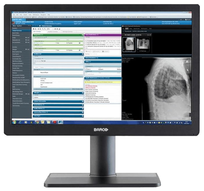 Das Barco Eonis-Display ist speziell für den sicheren Einsatz in der Klinik entwickelt. Ergänzt wird das intelligente Design durch zahlreiche Befestigungsoptionen und Anschlüsse.