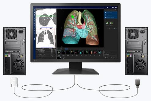 Der MX243W-DT zeigt anspruchsvolle monochrome Aufnahmen ebenso zuverlässig wie Farbbilder von allen erdenklichen Modalitäten. Dies bedeutet im Praxiseinsatz eine deutliche Effizienzsteigerung, denn Aufnahmen unterschiedlicher bildgebender Verfahren können so mit nur einem Monitor angezeigt werden.