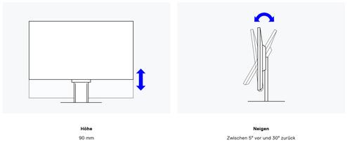 Ergonomisch und stabil: der verstellbare Standfuß hat die Ergonomie im Fokus. Den Monitor können Sie so drehen und neigen, wie es für Ihren Rücken, Ihren Nacken und Ihre Sitzhaltung am komfortabelsten ist. Dabei lässt er sich stufenlos in der Höhe verstellen und nahezu bis auf den Tisch oder die Bodenplatte des Standfußes absenken. So können Sie die oberste Bildzeile ergonomisch unterhalb der Augenhöhe positionieren.