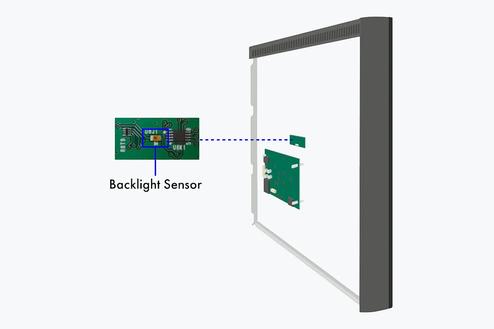 Ein Sensor für die Hintergrundbeleuchtung ermittelt permanent die Leuchtdichte des Monitors. Der Vorteil: Die definierten und kalibrierten Werte werden schon Sekunden nach dem Einschalten exakt wiedergegeben und bleiben während der gesamten Betriebszeit konstant. Der Sensor ist unsichtbar im Monitor integriert.