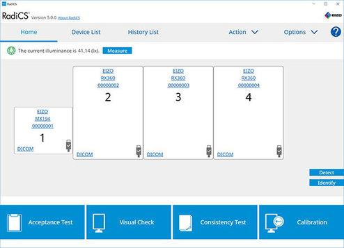 Das Qualitätssicherungs-Tool RadiCS beherrscht das komplette Monitor-Qualitätsmanagement. Angefangen bei der Kalibrierung über Abnahme- und Konstanzprüfungen bis hin zur täglichen Sichtprüfung. Mit den Messsensoren in modernen RadiForce-Schirmen für die Befundung, wie dem MX216-SB und MX216-HB, kann RadiCS sogar die messtechnischen Konstanzprüfungen völlig automatisieren. Die Software ist leicht verständlich, einfach zu bedienen und nicht nur für RadiForce-Monitore geeignet. EIZO bietet eine Komplettlösung aus Software und Sensoren, welche die Qualitätssicherung effizient und benutzerfreundlich gestaltet.