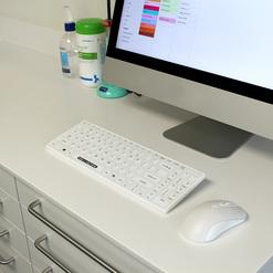 Glatte Oberfläche für problemloses Desinfizieren. Bedienkomfort einer Standard-Tastatur. Die Musterlösung für effektive Infektionskontrolle.