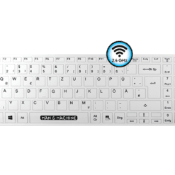 Die kabellose Tastatur Its Cool Flat ist eine weitere medizinische Tastatur von Man & Machine. Die Wirelessverbindung erfolgt über 2,4 GHz mit einem mitgelieferten Dongle.