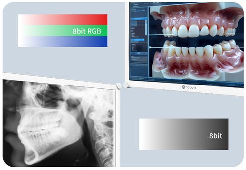Der DR-2202 Dentalmonitor passt die Helligkeit des Displays automatisch an, während er im DICOM-Modus zur Betrachtung von Zahn-Röntgenbildern verwendet wird, was zu einer professionelleren und klareren Präsentation beiträgt.