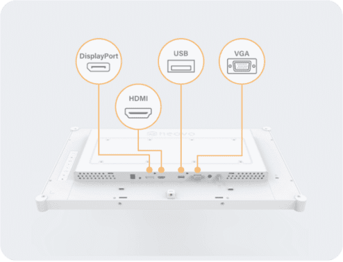 - VGA, HDMI, DisplayPort und Audio-Eingänge