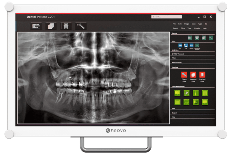 Die kompakten Ausmaße und die Eingangsvielfalt für unterschiedlichste Bildquellen, sowie anwendungsorientierte Features wie der praktische Illuminator-Mode zur einfachen Betrachtung analoger Röntgenaufnahmen, Gamma-Korrektur, Black-Level Justierung, sowie der voreingestellte DICOM-Modus mit 300 cd/m² zur Betrachtung digitaler Röntgenaufnahmen und sinnvolle Optionen wie dem optionalen Handgriff zur einfachen Positionierung machen den DR-2202 zur ersten Wahl als Display für die zahnmedizinische Patientenaufklärung in der Dentalpraxis.