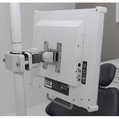 Durch die verstellbare Achse, Mittelgelenk sowie Neigung lässt sich der TFT-Halter optimal einstellen und bietet somit eine gute Sicht auf den Monitor für Patienten und Behandler.